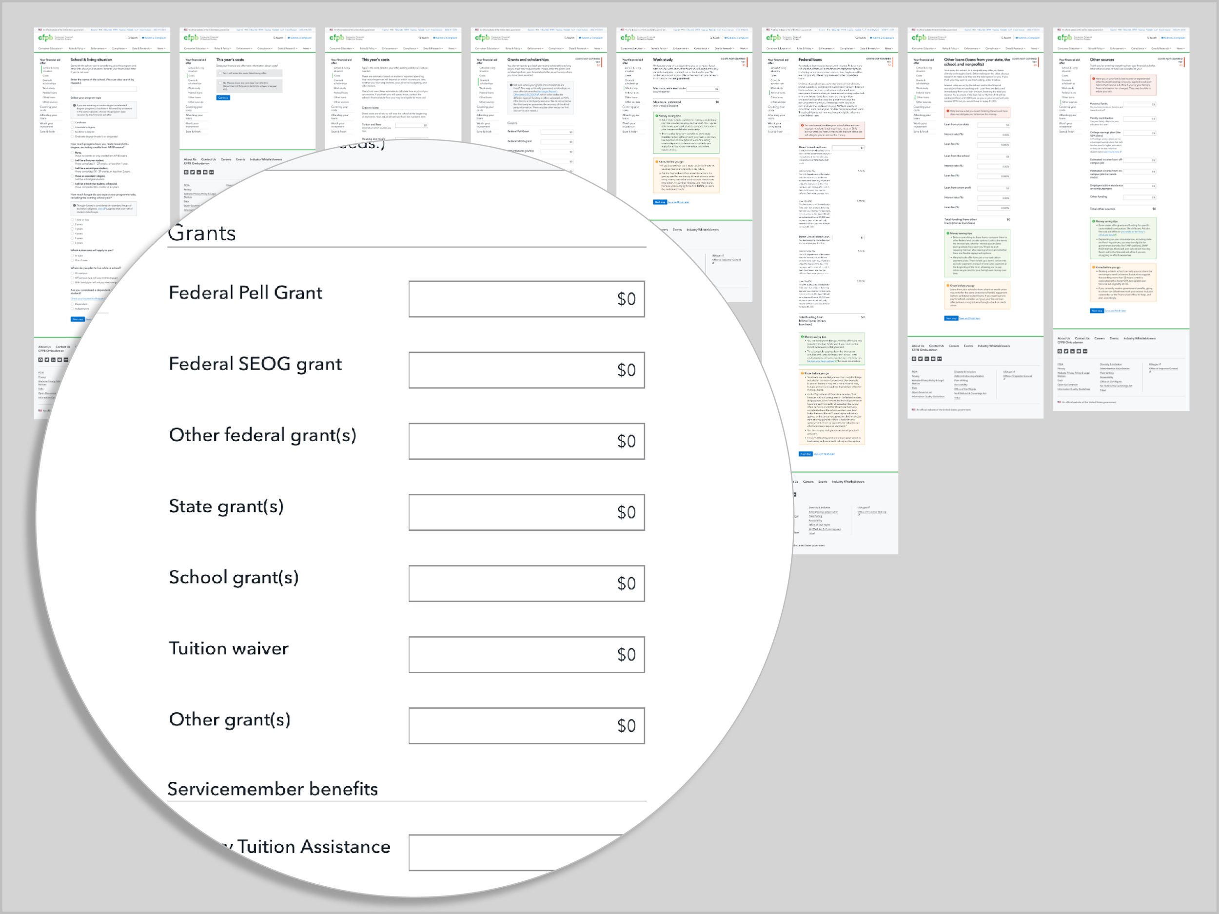 Streamlined data entry by pulling in public datasets to provide quick and easy estimates for students. This way, students see useful insights after a page, rather than after 12.