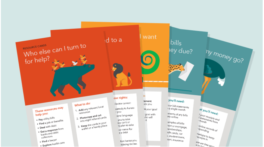 Collection of tools from "Behind on Bills," a compact, curated booklet of tools designed for frontline staff.