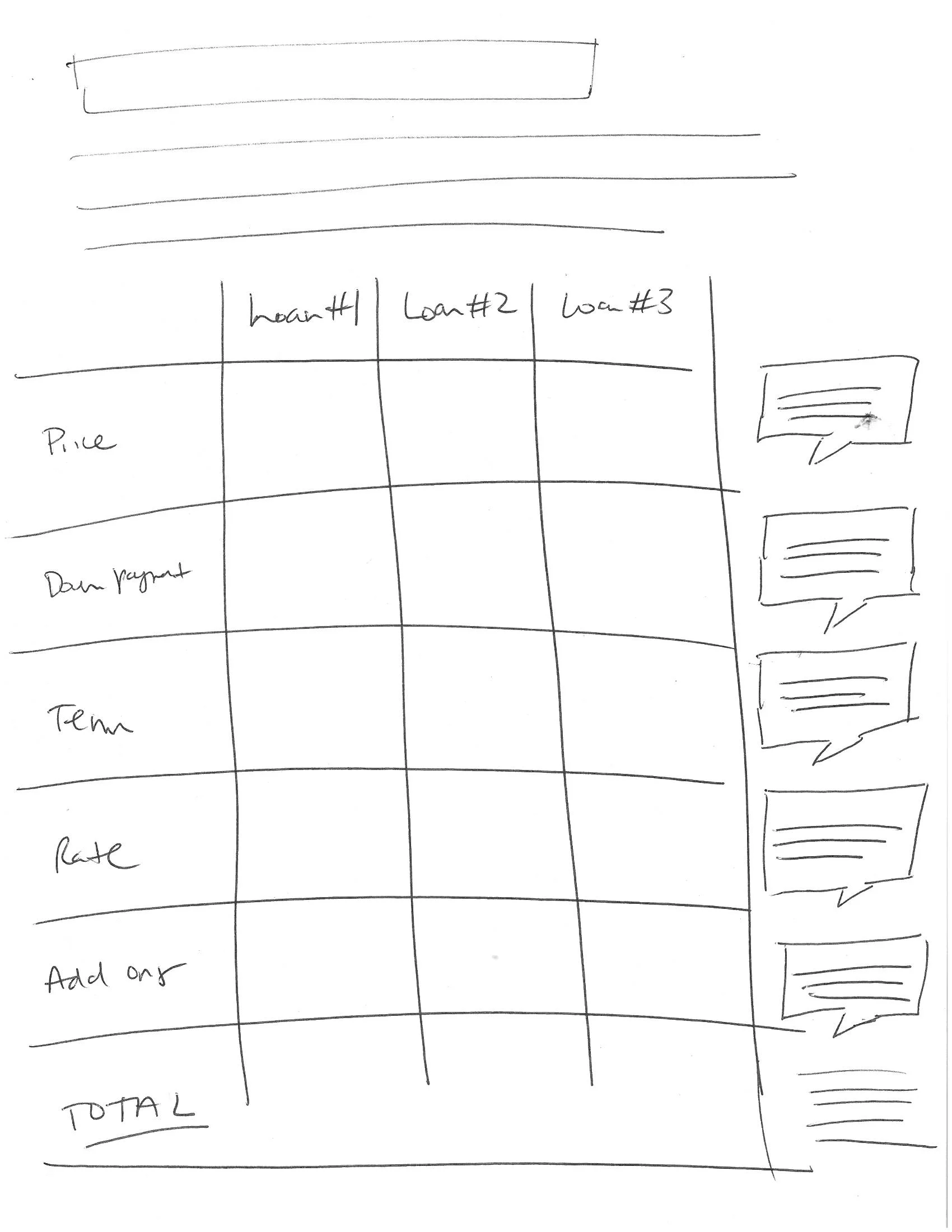 Early sketch: Preliminary sketch focused on the need to have multiple columns for comparing loans.