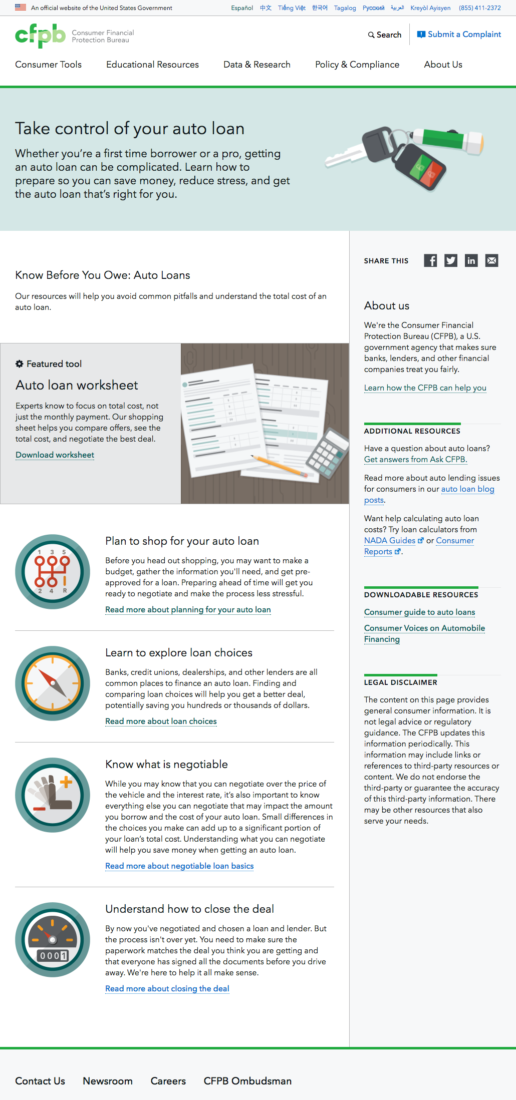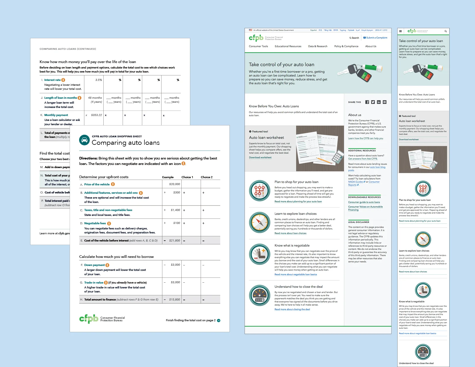 - A set of webpages to explain the car loan process to consumers so they know what to expect, what questions to ask, and what their rights are every step of the way.